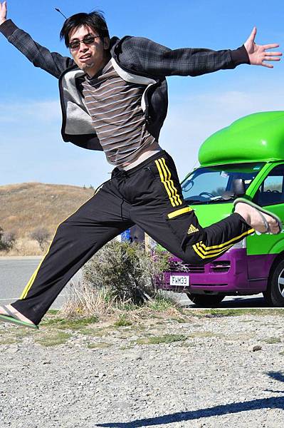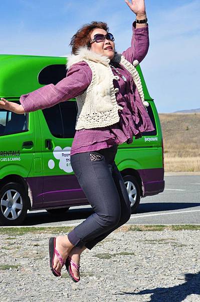 high 咖 們在路上跳跳跳, 我老媽在經過我們的示範後, 脫外套跳, 終於成功了~ 超台的拖鞋