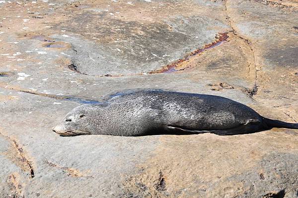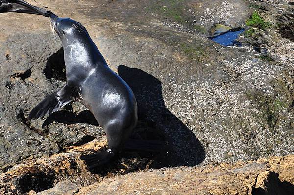 油油亮亮的毛色~ 這是剛從海裡上來的喔, 曬曬太陽後就變成接近褐色的海豹了