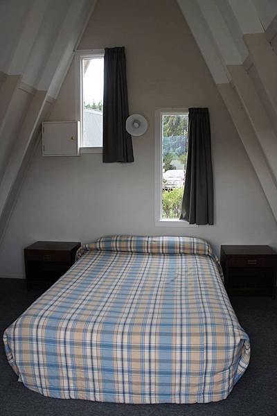 打開門房間就這麼大, 一張雙人床, 床頭有一盞昏黃的燈, 左邊白色箱子打開是電源開關, 酷吧