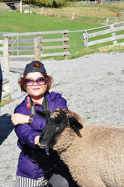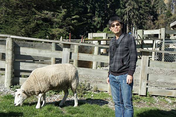 不知道為什麼羊咩咩不想跟他合照, 只要一靠近, 羊就跑走, 只好遠遠照合照了