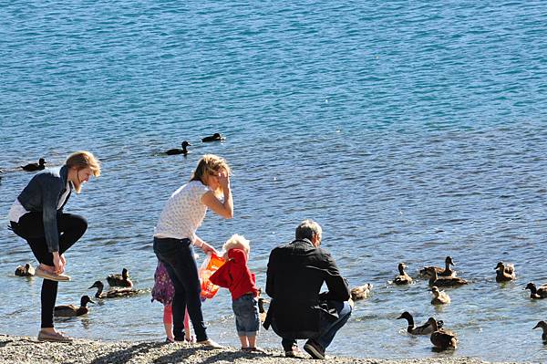 吃小點心的時候, 看到旁邊有小孩大人都在岸邊玩水, 水應該是很清澈
