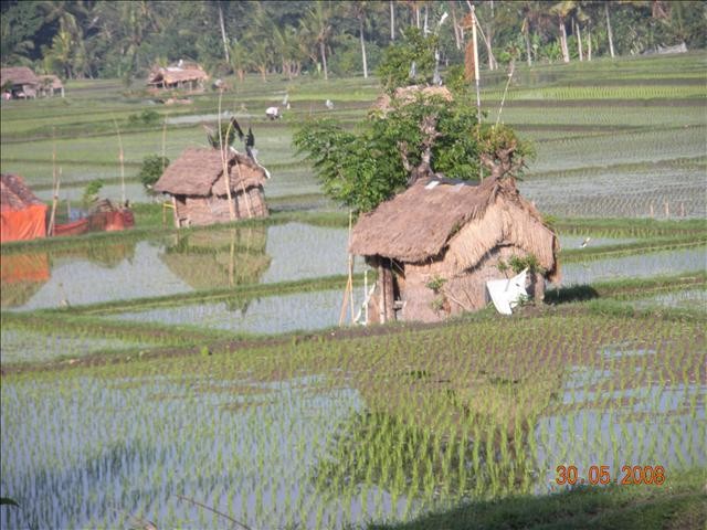 往海神廟的路上,想當然爾還是用”問路”的方法去摟~大約騎了40min吧,遇到一個Y型路口,問當地人,他告訴我們兩邊都可以去,但右邊的路比較好走,從Tabana去海神廟,大約要30min左右。騎騎騎,又騎了半個多小時,根本還沒有到Tabana(塔巴南是印尼比較大的城市之一,應該蠻熱鬧的吧),又開始問路,還問到警察,走走走,終於到了塔巴南,也看到往海神廟的牌子了。。。真是太感人了啦~沒想到看到指示牌到我們真的騎到海神廟的大門,大概騎了20-30min吧。。。真是太太太無言了,在2點多的時候,我們終於到了海神廟~