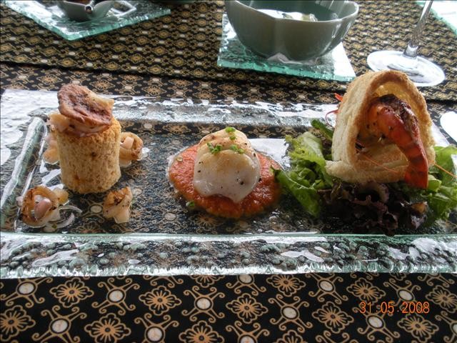 Tropic Bale點了兩個9萬的中午特餐:可以選擇前菜、主菜、跟甜點,另外還有7萬5的特餐是不含甜點的。waiter會詢問是否要點飲料,本身餐廳有付免費的水,所以水不用在點摟~