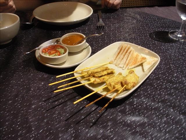 超不好吃的沙嗲,雞肉超乾~旁邊有烤土司可以配著吃