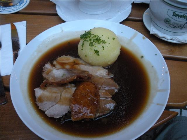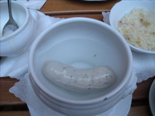又點到慕尼黑白香腸,旅途中吃最多的香腸,每次不小心就點到,水煮的會加上醬料給人搭配,注意包香腸的皮不能吃。本來是想點室友說的綜合香腸。