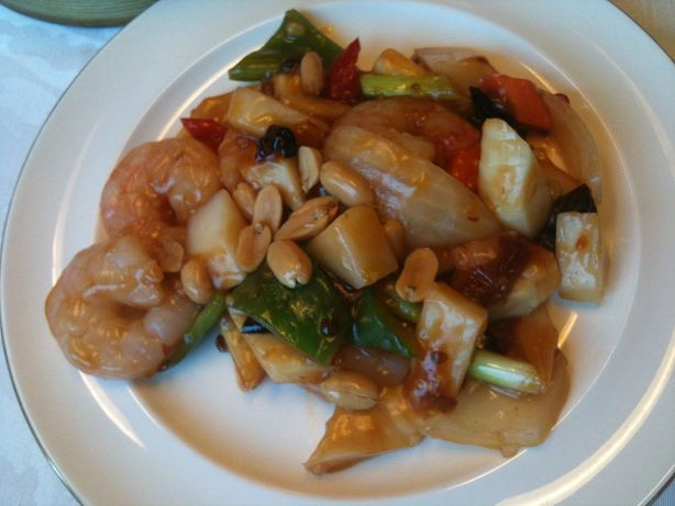 宮保蝦仁球, 好吃, 尤其是旁邊配料, 切小塊的筍子, 甜. 可惜沒有炒筍子這道菜. 不過不太辣就是.